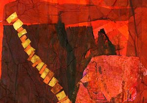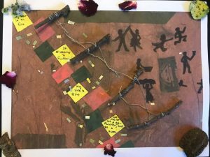 The piece I chose to work on in the Half Baked Art Collaboration is named Yellow Brick Road in Rough Terrain. When I first saw it I was reminded of The Wizard of Oz. I learned that many refugees in those camps arrived as young adults and ended up as grandparents without ever leaving the confinements.