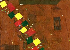 The piece that I chose to work with on this collaborative art project is Silver Specks. It depicts what appears to be a brightly colored road, dotted with silver, leading out of a brown, wasted, barren landscape. As I scrolled through the collection of art pieces made at the Kakuma Refugee Camp, I came across many that struck me. But this one spoke to me the most.