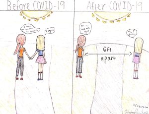 Friendship Natya Chandrasekar, 12 I created the friendship cartoon after I came from a walk where 2 friends were walking 6 feet apart and I realized this is going to be the way of life...