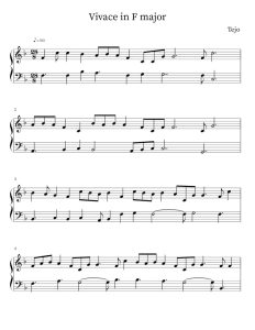 From the composer: "'Vivace in F major' is one of my most special compositions. For one thing, it is my shortest. The bigger reason is that it has a time signature of 28/8, and no...