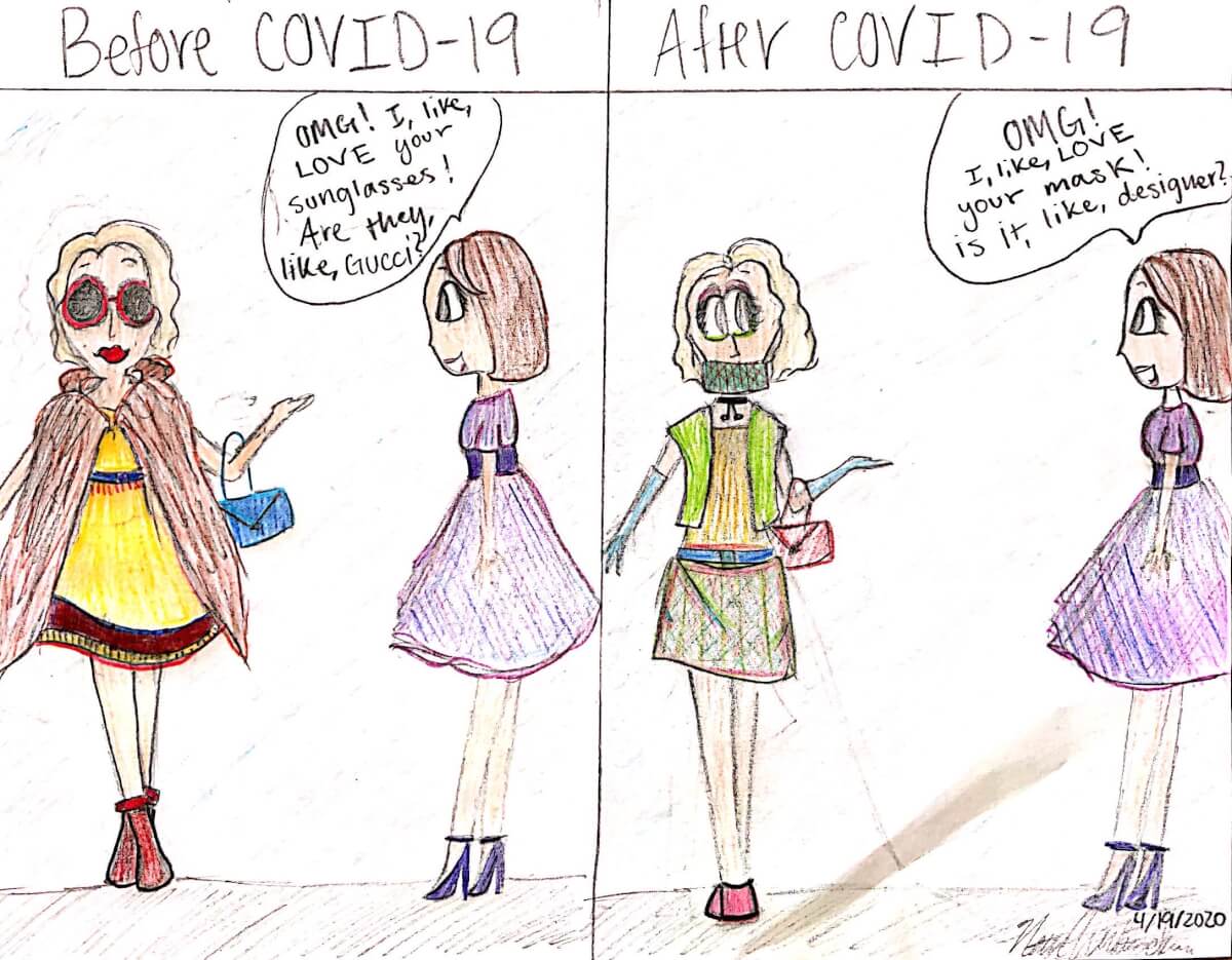 Being a young girl, fashion is something that I think about all the time and I saw how people were obsessed with the kind of mask they were buying: neutral colors, bold colors, colorful prints etc., and this cartoon was created on that idea.