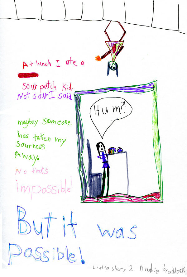 A set of drawings by Annalise Braddock, age 7 – with a link to audio where she talks about the origin of her ‘Little Stories’.