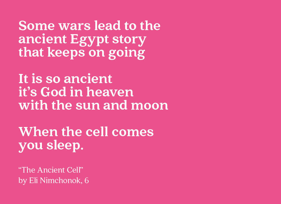 The Ancient Cell By Eli Nimchonok Published October 18, 2020 Some wars lead to the ancient Egypt story that keeps on going It is so ancient it’s God in heaven with the sun and moon When the cell comes you sleep. Eli Nimchonok, 6Toronto, Ontario, Canada