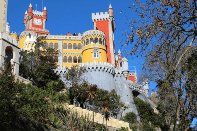 Sintra is a must visit town that is bustling with tourists and it is an easy 1 hour train ride from Lisbon. There are loads of tourist attractions in the town of Sintra but the Pena Palace is definitely the highlight. We went up to the Pena Palace in a bus as it is made on a hill. You can also trek up to the palace but we preferred the bus as we had my little brother with us. The Sintra Pena Palace is a gorgeous palace and the first thing that strikes you is the colourful facade.