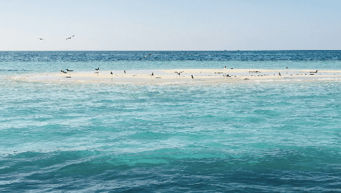 In the middle of the sea, there is a small island full of birds. Our group stayed here for half an hour. The water here was crystal clear, with white sand at the bottom.