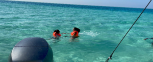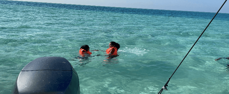 The sea is all different colours–it depends on the depth of the water. Another amazing part of this ride was taking a dive in the middle of the Red Sea, where the water was shallow. Also, there were corals of all different hues and islands full of greenery. Every spot in this place is magnificent!