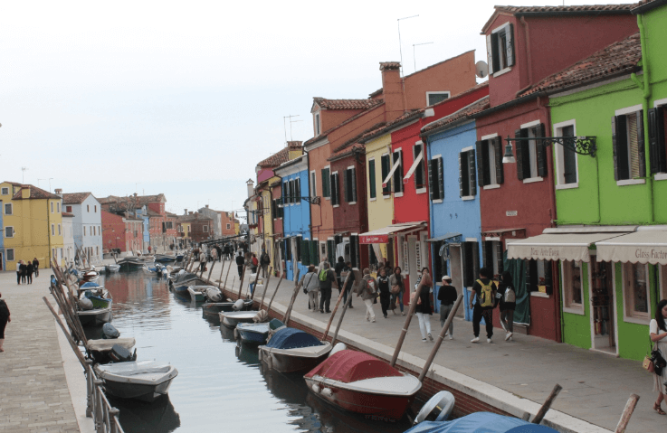 The city of Venice begins at about 400 A.D. when people fled to the Venetian Lagoon from the Barbarians who had come to conquer mainland Italy. At that time Venice hadn’t been built so the refugees crowded on to fisherman villages (like Burano). Everybody kept trying to go back to resume their normal lives but soon realised that it was impossible to live there. So only then was the decision to build Venice, a city safe from Barbarians, made. But after that they had to put wood brought from Croatia on 118 mud islands, and then join those islands together with canals and bridges! Thus was the magnificent and floating city of Venice built. It is amazing that a ‘city built in fear’ turned out to be one of the most glamorous cities ever to be built.