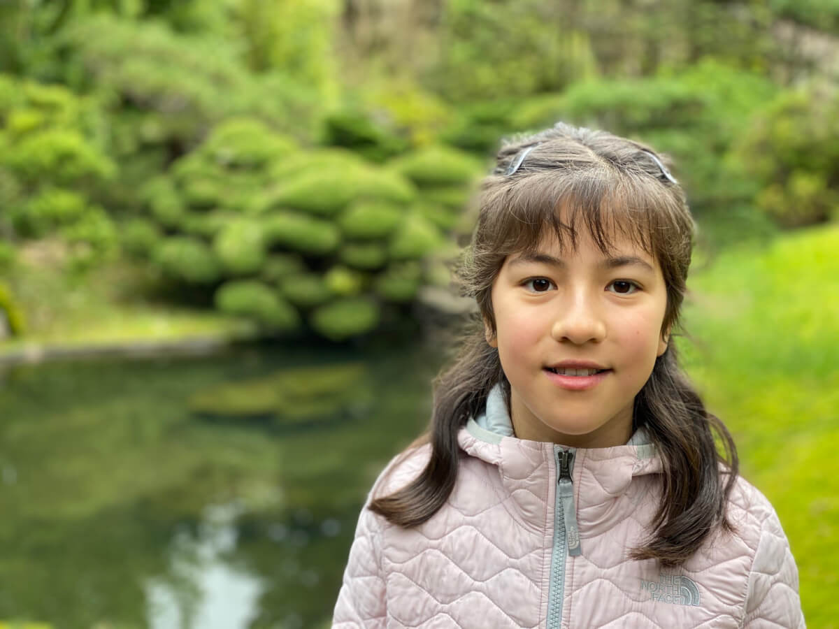 She had a sweet smile on her face, and her big brown eyes were bright with curiosity. She looked around, her long, brown braid that hung down her back swiveling alongside her head.